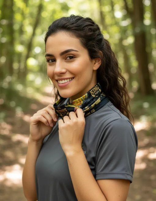 As bandanas da King Brasil são desenvolvidas com os mais altos padrões de qualidade, costura e modelagem, ideais para a prática de esportes ao ar livre. Com diversas formas de uso, podem ser adaptadas conforme a necessidade do usuário. Suas estampas são feitas à mão, garantindo um design exclusivo e alta qualidade visual com proteção Solar UV