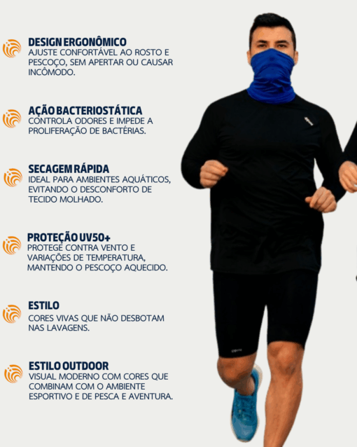 - Formato: Tubular versátil – use como faixa, máscara, pescoceira, pulseira ou como quiser