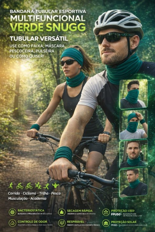 Bandana Tubular Esportiva Multifuncional Verde Snugg