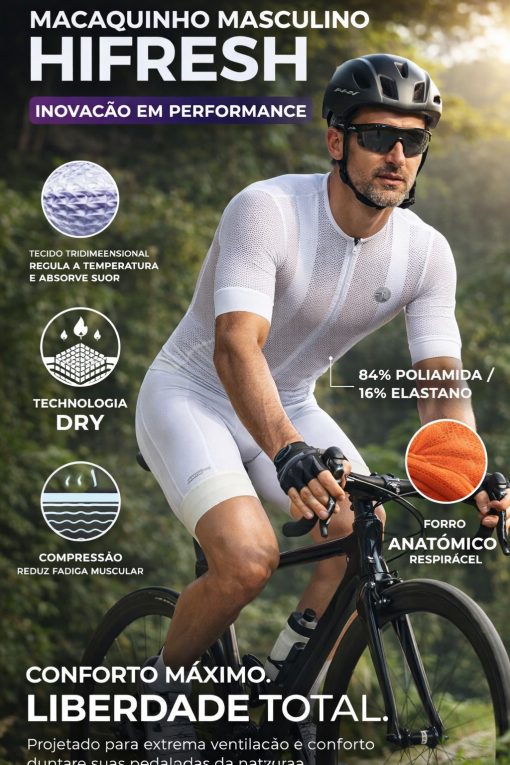 Tecido com textura tridimensional garantindo maior troca térmica e dispersão do calor e absorção do suor.
