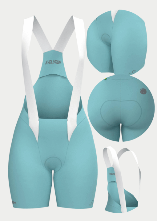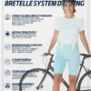 As alças são compostas por fitas elásticas de alta compressão e contam com um acabamento de fita italiana termosoldada nas barras cortadas a fio, o que impede que o bretelle se movimente durante o pedal.