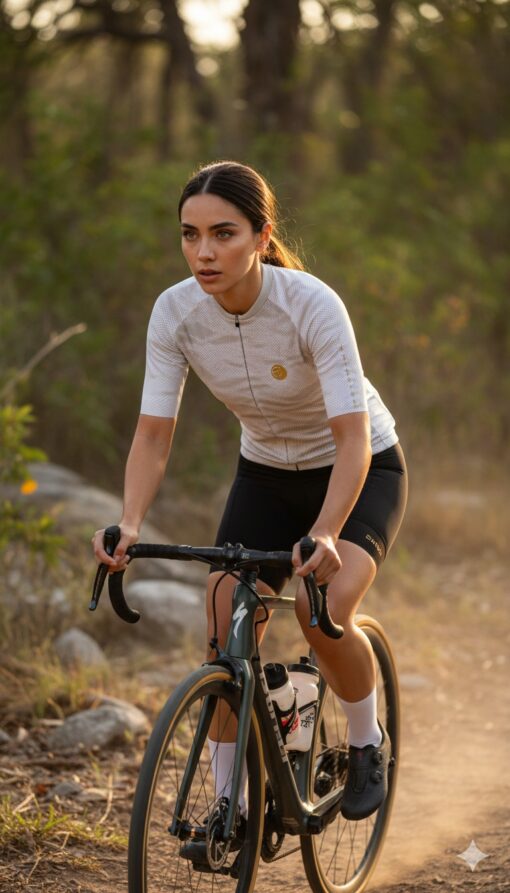 Além disso, o material respirável facilita a evaporação do suor, mantendo a pele seca e fresca por mais tempo. A proteção solar UV50+ assegura segurança durante o pedal, enquanto os detalhes refletivos aumentam a visibilidade em ambientes com pouca luz. O elástico siliconado italiano na barra evita que a peça se desloque, oferecendo estabilidade mesmo em movimentos intensos.