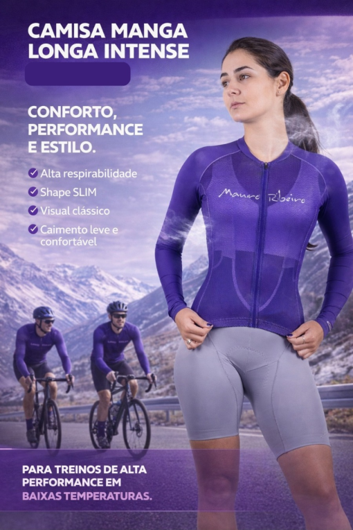 Camisa Ciclismo Feminino Manga Longa Intense Azul Mauro Ribeiro