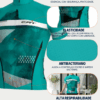 Seu design funcional inclui um bolso traseiro dividido em três compartimentos, ideal para transportar itens essenciais durante o percurso. O zíper de abertura total adiciona praticidade, permitindo ventilação ajustável e facilidade no uso.