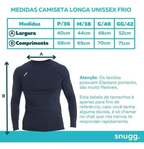 A camisa de manga longa unissex é ideal para quem pratica corrida, ciclismo, beach tennis, trilha, musculação e pesca esportiva. Com proteção solar UV50+, conforto térmico, tecnologia SunDry, secagem rápida e absorção de suor, é uma peça esportiva respirável, com compressão leve e design ergonômico. Perfeita para atividades ao ar livre, estilo fitness e uso diário. A camisa oferece cobertura completa dos braços, com caimento ajustado e funcionalidade versátil, podendo ser usada como camada de proteção em diferentes condições climáticas.
