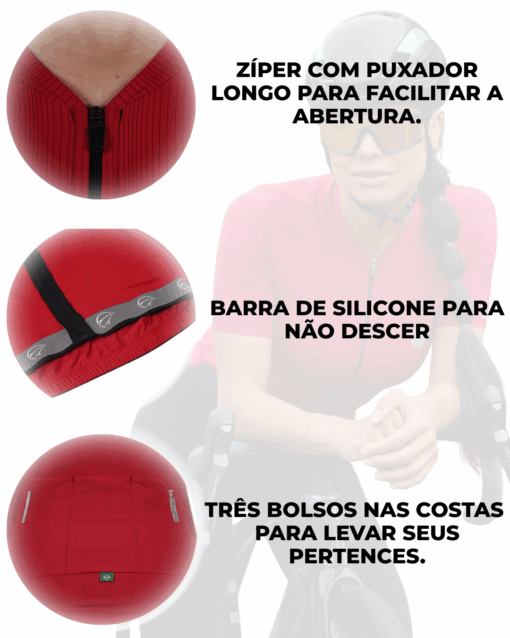 Tecido tratado com bloqueadores UFP50+ na frente, costas e mangas, que ajudam a prevenir queimaduras. (Esta proteção foi analisada e certificada por laboratório especializado, porém não dispensa o uso de protetor solar).