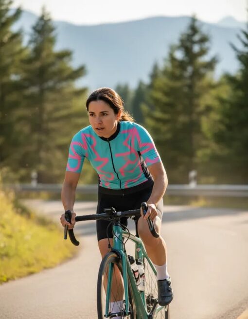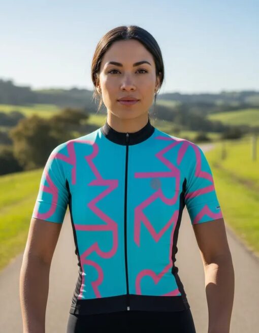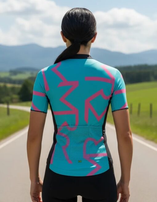 Camisa de Ciclismo FemininaAzul Bebê e Rosa Identite Mauro Ribeiro