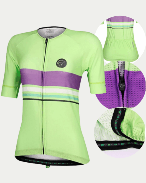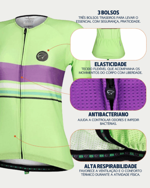 A Camisa de Ciclismo Feminina Mauro Ribeiro Lines Verde 2022 oferece conforto, estilo e performance. Com tecido mesclado de poliéster e fibras elásticas, garante leveza, respirabilidade e toque macio. Possui proteção UV 50+, controle de umidade, tratamento antibacteriano e grafismo sublimado que mantém as cores vivas.