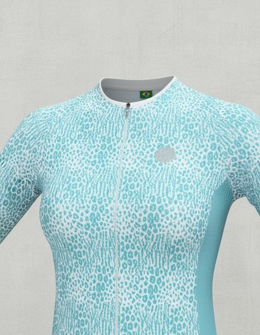 Camisa de Ciclismo Feminina Fiber Celeste Mauro Ribeiro Sports