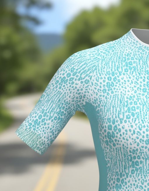 A Camisa manga curta Feminina ONÇA Mauro Ribeiro entrega leveza, aerodinâmica e conforto térmico de maneira excepcional. A construção da camisa é feita com tecidos de alta tecnologia, com toque macio, brilho e desenho com relevo. O acabamento da barra das mangas é garantido com fita elástica italiana, que garante um ajuste perfeito durante o pedal. Na barra a sutileza do acabamento é feita pelo detalhe do elástico com silicone interno sublimado com a mesma estampa da camisa garantindo ótima aderência ao corpo. Seu tecido possui a propriedade de absorver água e a facilidade de evaporação do suor durante o uso.