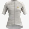 Conforto e Ajuste: Corte ajustado com acabamento em corte a frio na gola e mangas, além de elástico siliconado italiano na barra, que evita o deslocamento da peça durante o pedal.