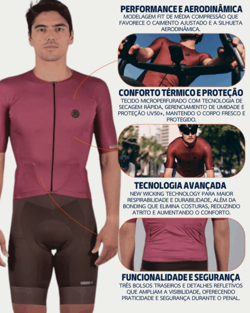 Camisa De Ciclismo Masculina Linea Bordô Mauro Ribeiro