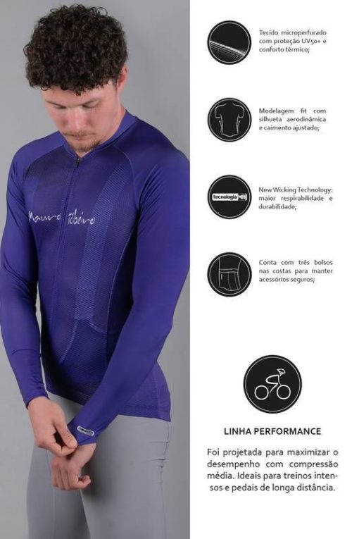 Camisa De Ciclismo Masculino Manga Longa Intense Azul Mauro Ribeiro