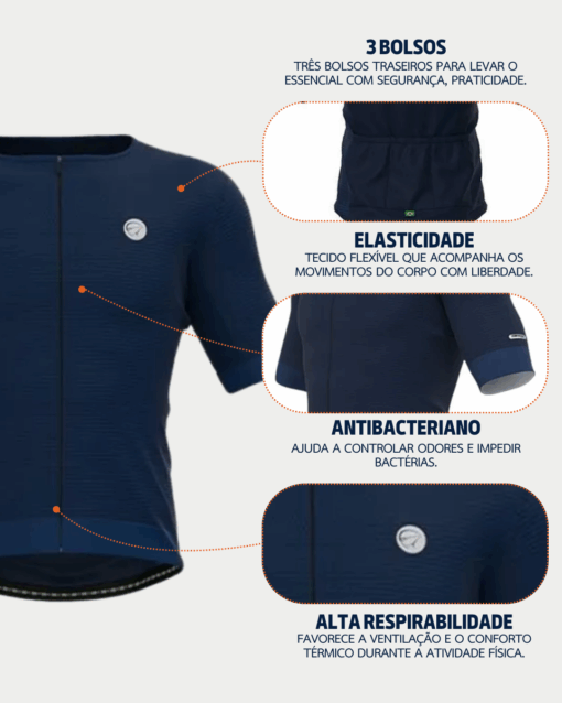 Pensada para suportar altas temperaturas, o seu tecido é ventilado e levemente texturizado, que aumenta a respirabilidade. Os três bolsos na parte de trás facilitam o acesso aos itens essenciais durante o pedal.