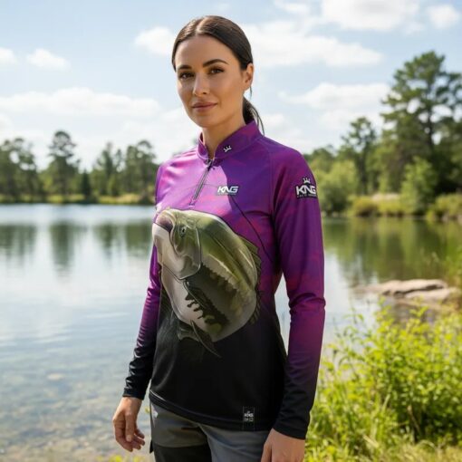 Camisa De Pesca C/ Proteção Solar Fem Peixe Tamba Roxa King