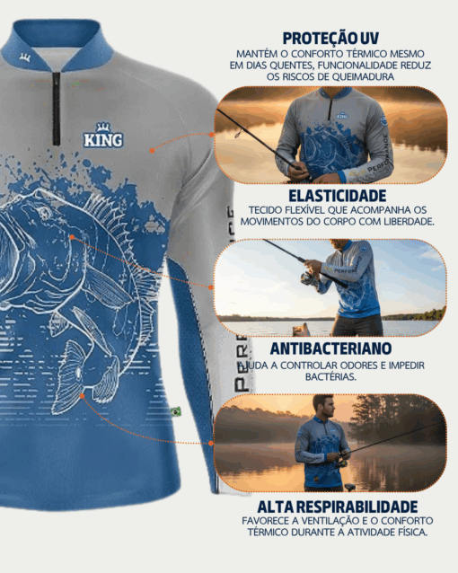 Para os mais exigentes, as camisas da King Brasil com proteção UV protegem a pele durante a exposição ao sol com maior conforto e funcionalidade.