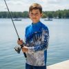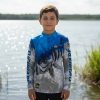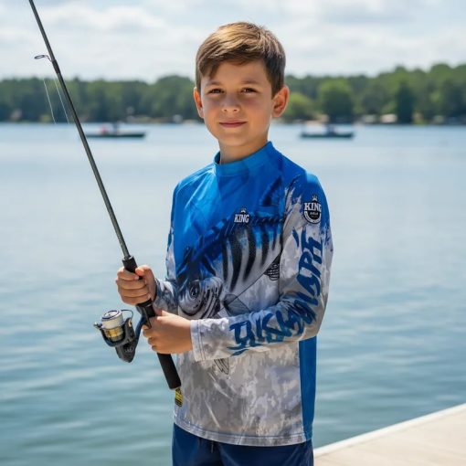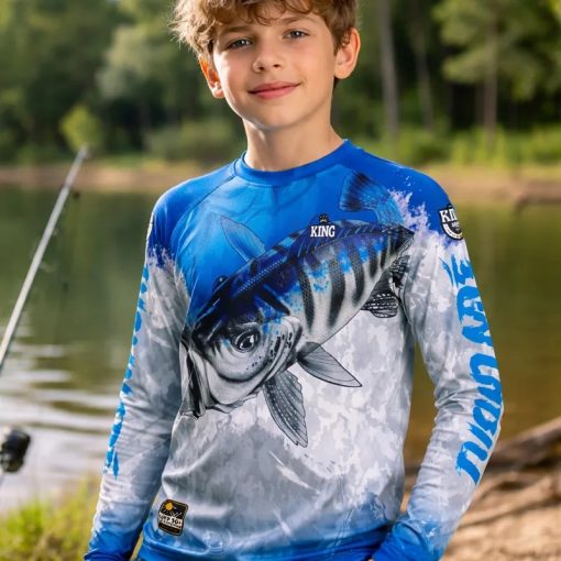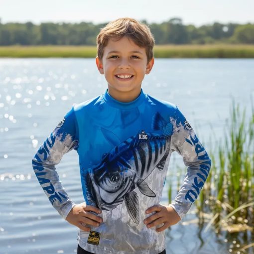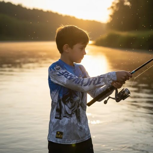 A camisa infantil de pesca com proteção solar UPF 50+ contra UVA e UVB garante conforto, segurança, leveza, respirabilidade e estilo em praia, esporte e passeio, oferecendo resistência, secagem rápida, praticidade e bem-estar para os pequenos.