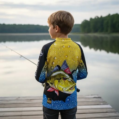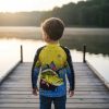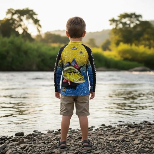 A camisa infantil de pesca com proteção solar UPF 50+ contra UVA e UVB garante conforto, segurança, leveza, respirabilidade e estilo em praia, esporte e passeio, oferecendo resistência, secagem rápida, praticidade e bem-estar para os pequenos.