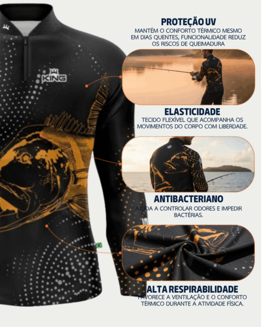Para os mais exigentes, as camisas da King Brasil com proteção UV protegem a pele durante a exposição ao sol com maior conforto e funcionalidade.