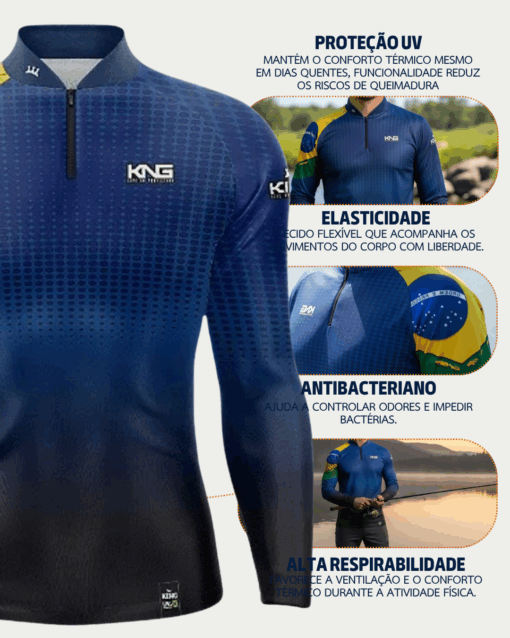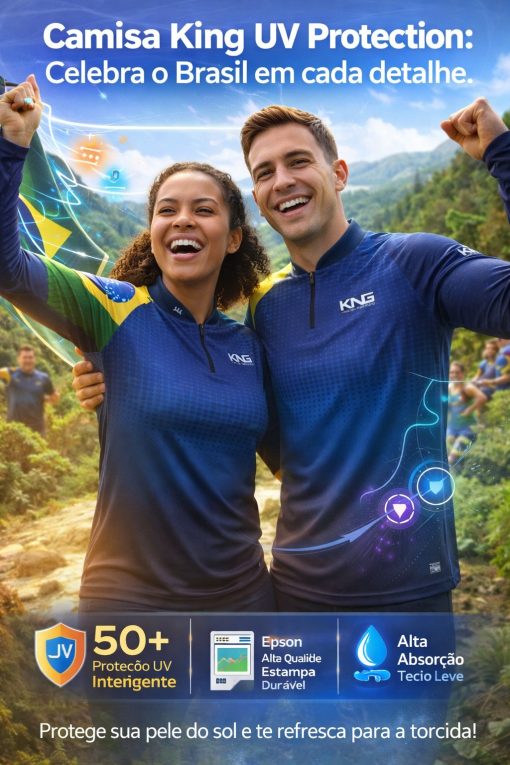 Para os mais exigentes, as camisas da King Brasil com proteção UV protegem a pele durante a exposição ao sol com maior conforto e funcionalidade.