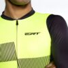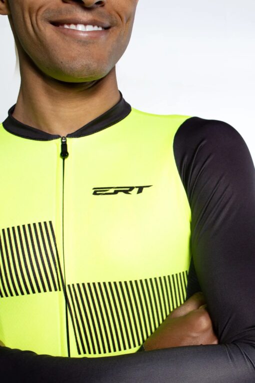 Mantém toda a estrutura de uma camisa de ciclismo: corte anatômico que favorece a performance, zíper inteligente para praticidade e os tradicionais 3 bolsos traseiros para carregar pequenos objetos durante o pedal.