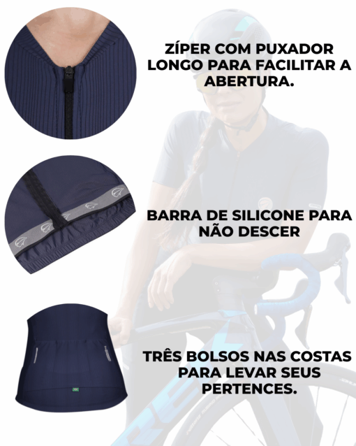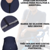 Tecido tratado com bloqueadores UFP50+ na frente, costas e mangas, que ajudam a prevenir queimaduras. (Esta proteção foi analisada e certificada por laboratório especializado, porém não dispensa o uso de protetor solar).