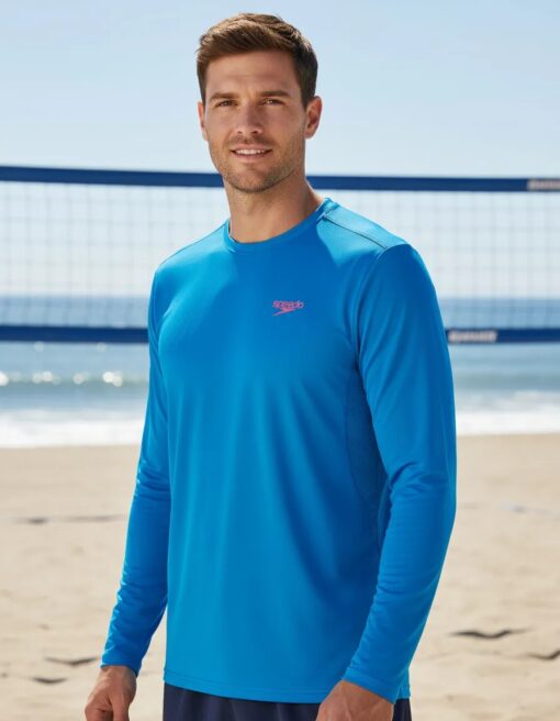 Camiseta Esportiva Manga Longa Power Running Azul Speedo