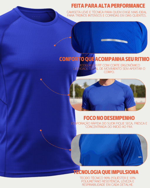 Camiseta Esportiva Masculina Treino e Corrida Azul Bic