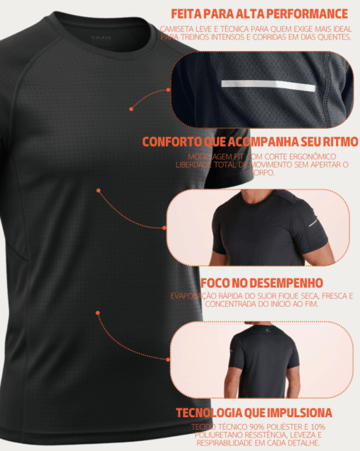 Tecnologia Fast Dry • Alta absorção do suor para manter o corpo seco • Secagem rápida que garante frescor mesmo nos treinos mais intensos
