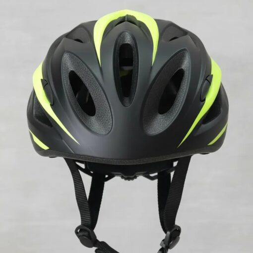 A construção In-Mold, com o casco moldado e injetado ao EPS, gera leveza e compõe uma peça com muita resistência. Para a fixação do capacete à cabeça, os engates da cinta jugular são práticos para ajustar até pedalando.