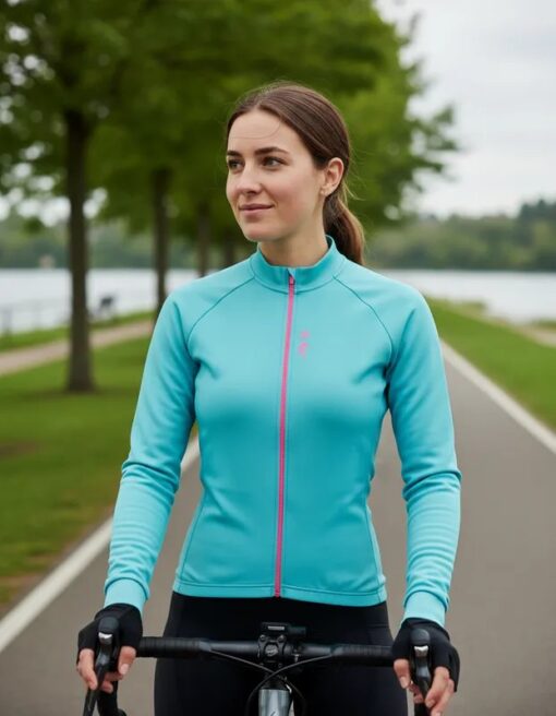 Camisa de Ciclismo Mangas Longas Weft Turquesa Mauro Ribeiro