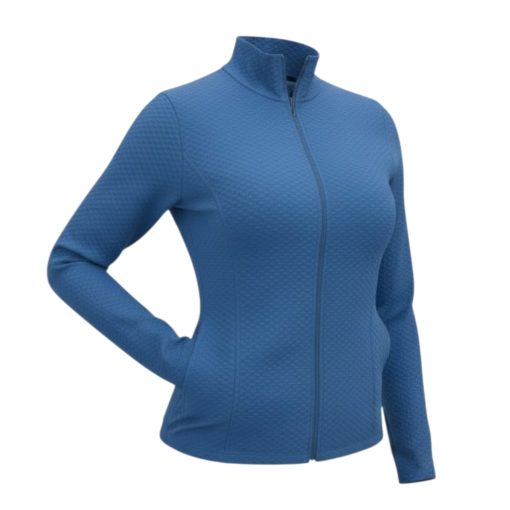 O design apresenta modelagem reta com zíper frontal, que garante praticidade no vestir e liberdade de movimento. A gola alta discreta oferece proteção adicional contra vento, enquanto as costuras reforçadas aumentam a durabilidade da peça sem comprometer sua leveza. A tonalidade azul vibrante é marcante e fácil de combinar com calças pretas, jeans ou peças neutras, criando composições casuais e urbanas.