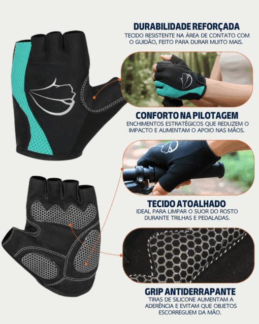 Luva de Ciclismo Gel MTB/SPEED Turquesa Mauro Ribeiro Sports