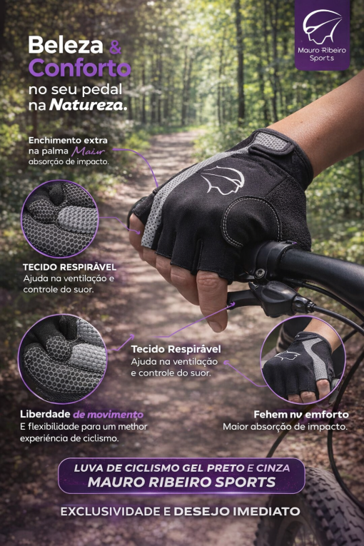 Luva de Ciclismo Gel MTB/SPEED Preta Unissex Mauro Ribeiro