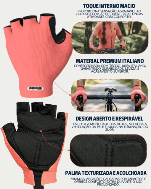 A palma texturizada e acolchoada confere uma pegada segura, minimiza as vibrações causadas pelo impactos e proporciona mais conforto e proteção às mãos. Seu desenho aberto possibilita maior mobilidade dos dedos, facilitando a eliminação do suor e permitindo uma melhor respiração da pele.