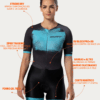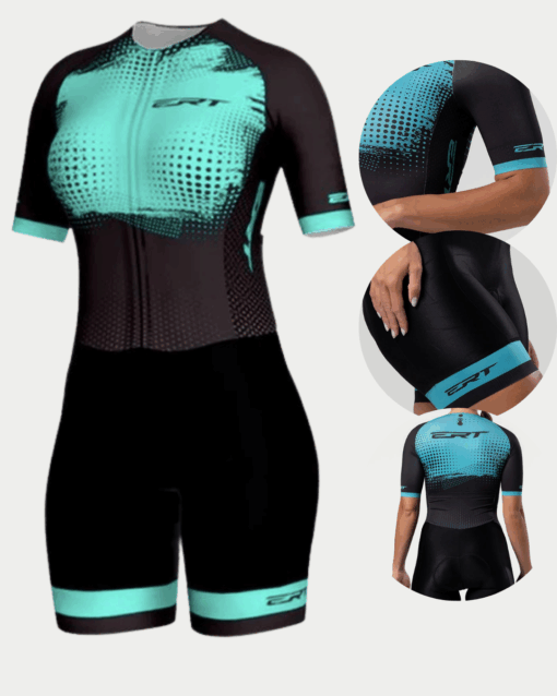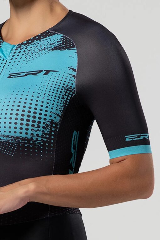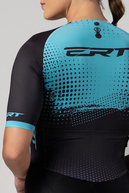 - Confeccionada com tecidos tecnológicos de alta leveza e respirabilidade