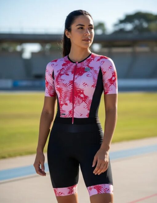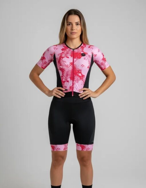Macaquinho De Ciclismo Leaf Rosa Mauro Ribeiro Sports