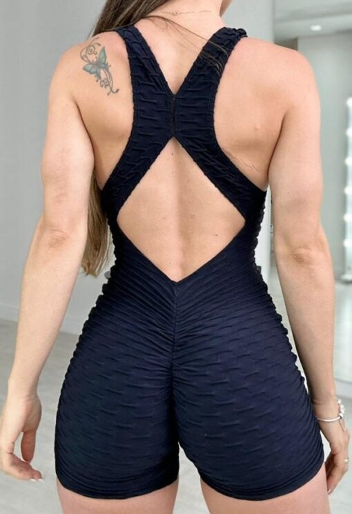 - Decote largo nas costas: valoriza as curvas femininas, proporcionando equilíbrio entre delicadeza e performance.