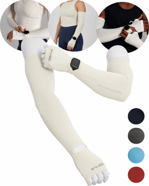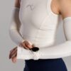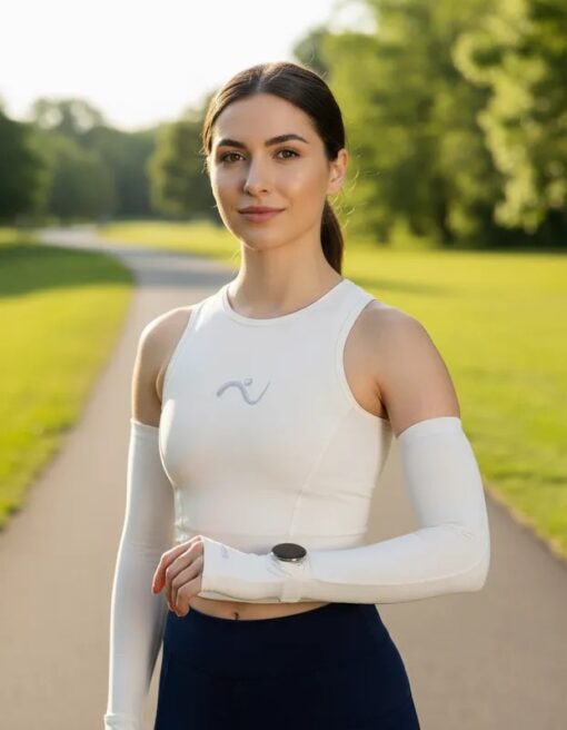 Seu design anatômico garante ajuste firme e confortável, com liberdade total de movimento. A abertura estratégica para relógio permite visualizar o visor com facilidade, sem comprometer a proteção dos braços. Ideal para quem usa smartwatch, monitor cardíaco ou relógio esportivo.