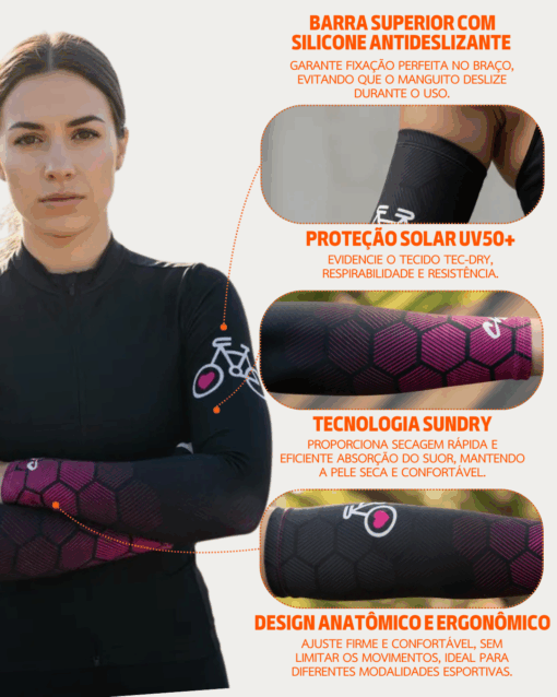 Leve, respirável e resistente, o manguito é ideal para quem valoriza estilo esportivo, funcionalidade e proteção completa para os braços em qualquer estação do ano.