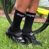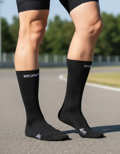 Feita de fio de poliamida, material resistente, leve e muito confortável. Possui telas de respiro na sola e parte superior dos pés, facilitando a troca térmica e evitando que o pé fique muito úmido. Possui tratamento bactericida com íons de prata, que afasta as bactérias, evitando odores indesejáveis.