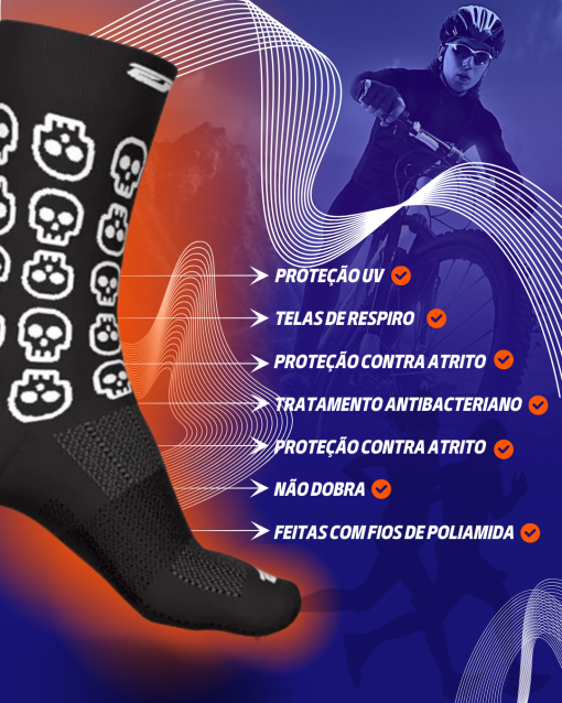 Meia de Ciclismo Unissex Caveira Preta Ert