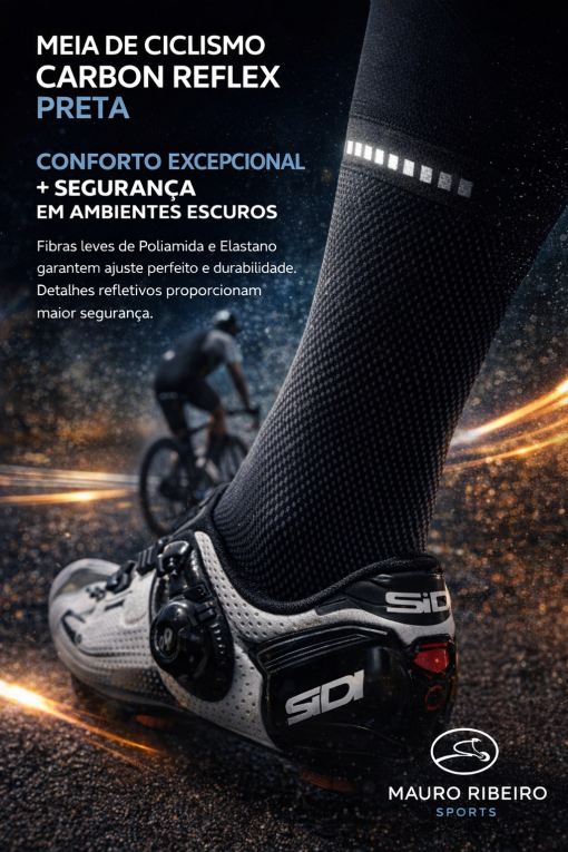 Meia de Ciclismo Carbon Reflex Preta Mauro Ribeiro Sports
