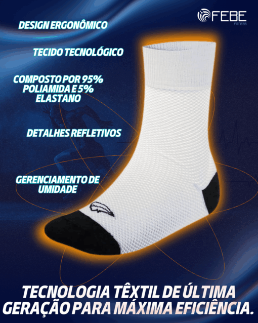 Meia Feminina de Ciclismo Carbon Reflex Branca Mauro Ribeiro