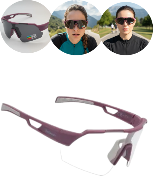 O Óculos de Ciclismo Elleven EL61 foi desenvolvido para quem busca performance, proteção e estilo em um único acessório. Com armação leve em policarbonato e lentes fotocromáticas que se adaptam automaticamente à intensidade da luz, ele garante visão nítida em qualquer condição. Seu design moderno nas cores roxa e cinza proporciona personalidade, enquanto a proteção UV400 assegura total segurança contra raios solares. Ideal para ciclismo de estrada, MTB e uso urbano, é a escolha perfeita para quem pedala com intensidade e não abre mão do conforto.