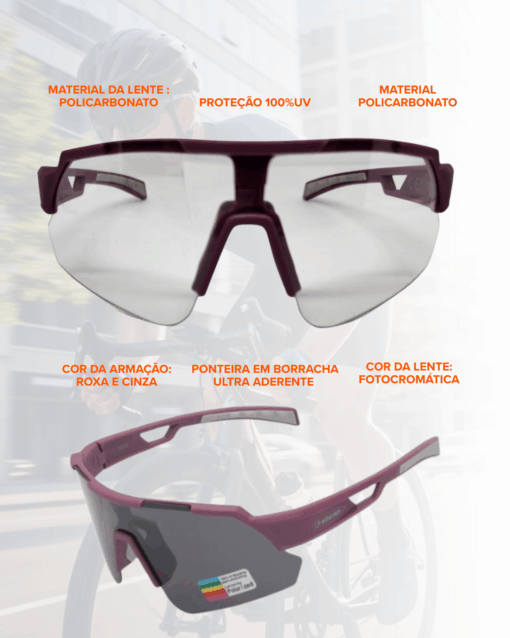 Oculos Ciclismo Lente Fotocromática Roxo Cinza Elleven