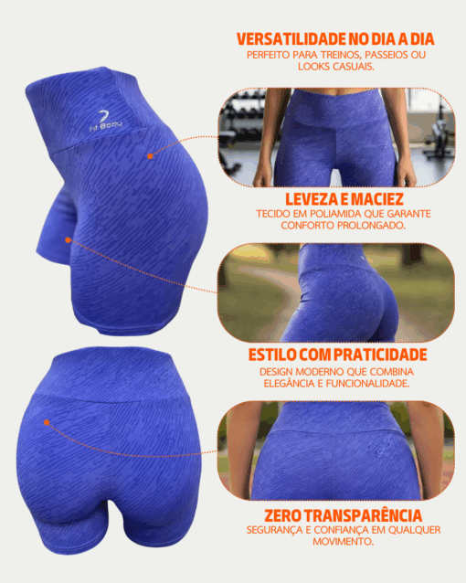 - Cós alto: oferece sustentação firme, valorizando a silhueta e garantindo maior conforto durante os exercícios.