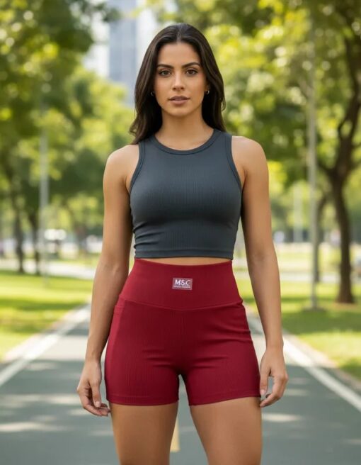 - Cós alto: oferece sustentação firme, valorizando a silhueta e garantindo maior conforto durante os exercícios.