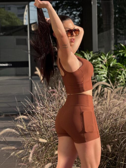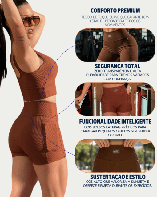 - Cós alto: oferece sustentação firme, valorizando a silhueta e garantindo maior conforto durante os exercícios.
