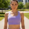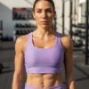 Top esportivo, top nadador, treino intenso, treino leve, academia, fitness, conforto, compressão, bojo removível, zero transparência, proteção UV, tecido durável, liberdade de movimento, design moderno, estilo texturizado, cores vibrantes, celeste, coral, lavanda, segurança.